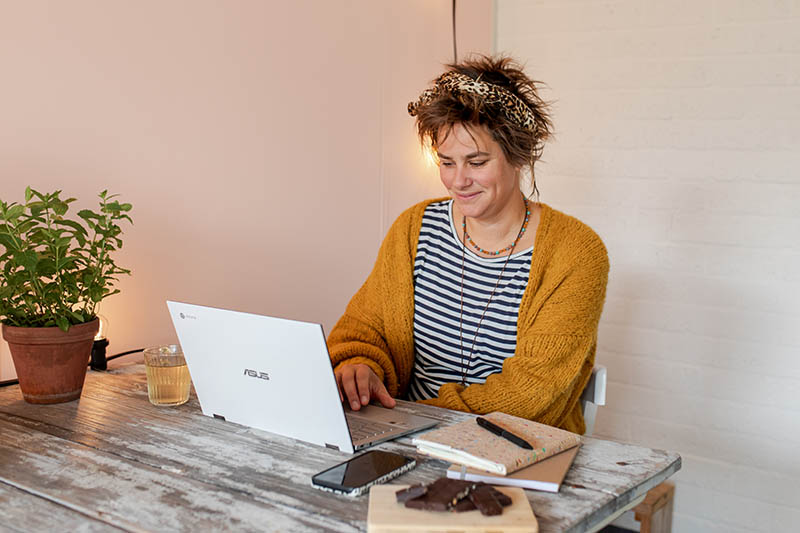 Ja, het werkt dus ook online, ik vond dat maar raar in het begin. Maar het blijkt in sommige gevallen echt een uitkomst te zijn. Zorg dat je een goede internetverbinding hebt en een lekkere plek om te zitten waar je niet wordt gestoord. Het is belangrijk dat ik je hoofd goed kan zien. En uiteraard moet het geluid in orde zijn. En mocht het internet er nou uit knallen….. ook daar heb ik aan gedacht, komt goed!